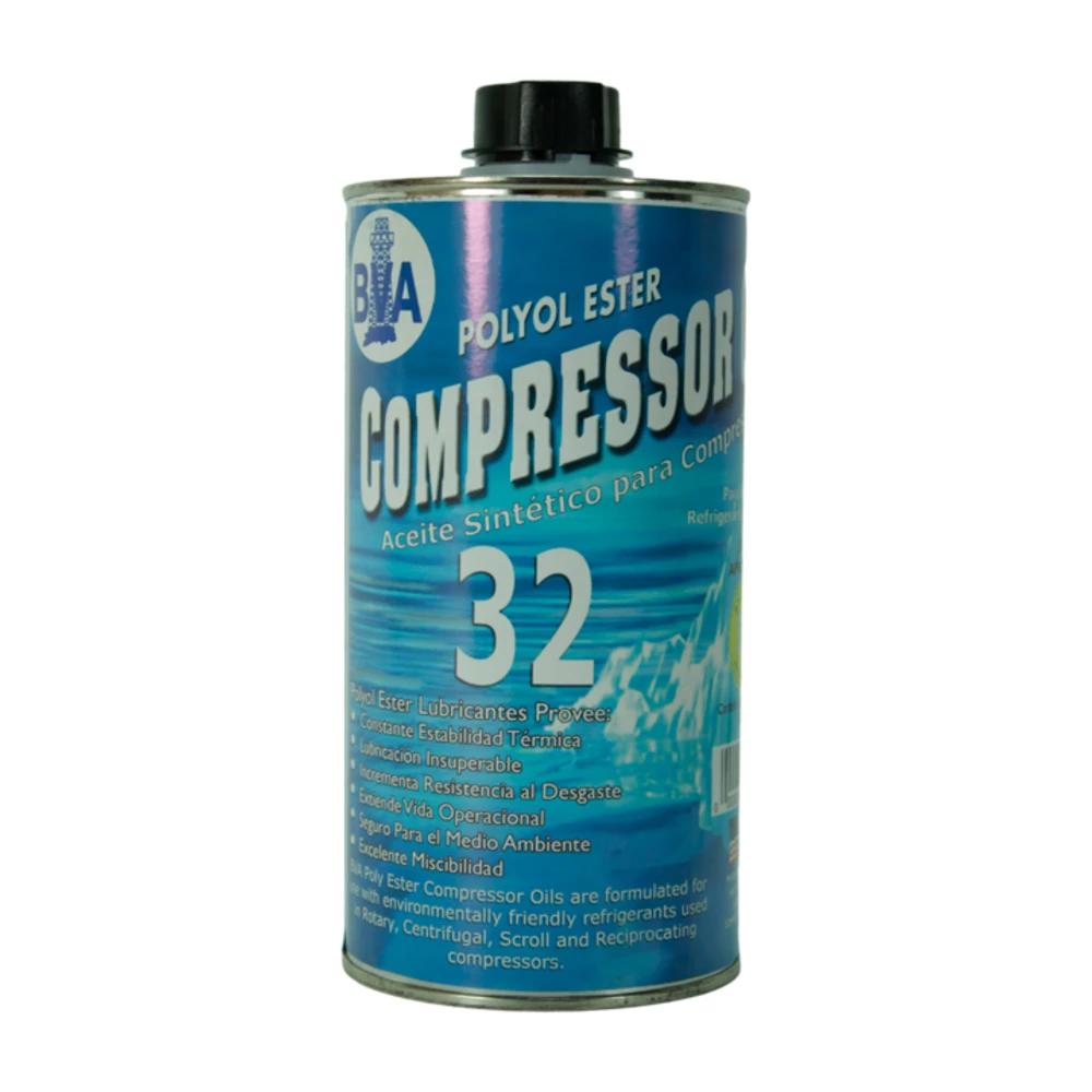 El Aceite polyolester POE, viscosidad ISO 32, litro, BVAPOE32L, BVA es un aceite POE (polyolester) orientado a sistemas HVAC/R que requieren alta miscibilidad con refrigerantes HFC (por ejemplo R-410A), favoreciendo el retorno de aceite y una lubricación homogénea. El grado ISO 32 permite ajustar la viscosidad a la aplicación (temperatura/carga) indicada por el fabricante del compresor. Presentación: litro. Código: BVAPOE32L.