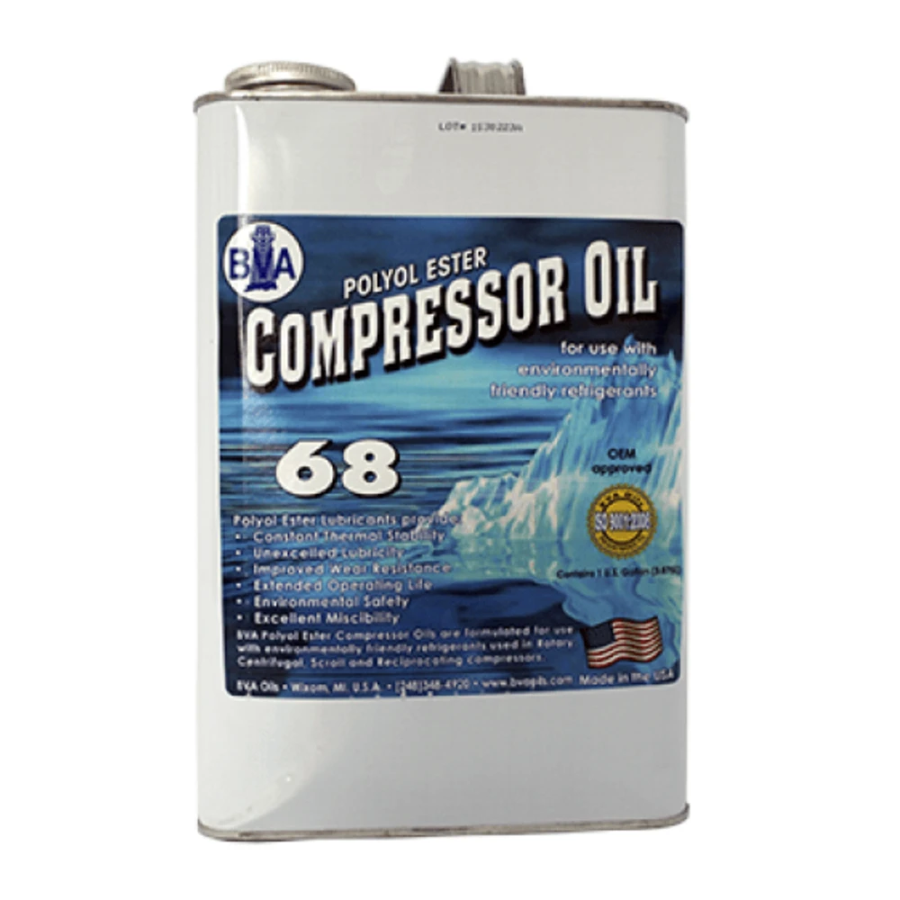 El Aceite polyolester POE, viscosidad ISO 68, galón, BVAPOE68G, BVA es un aceite POE (polyolester) orientado a sistemas HVAC/R que requieren alta miscibilidad con refrigerantes HFC (por ejemplo R-410A), favoreciendo el retorno de aceite y una lubricación homogénea. El grado ISO 68 permite ajustar la viscosidad a la aplicación (temperatura/carga) indicada por el fabricante del compresor. Presentación: galón. Código: BVAPOE68G.