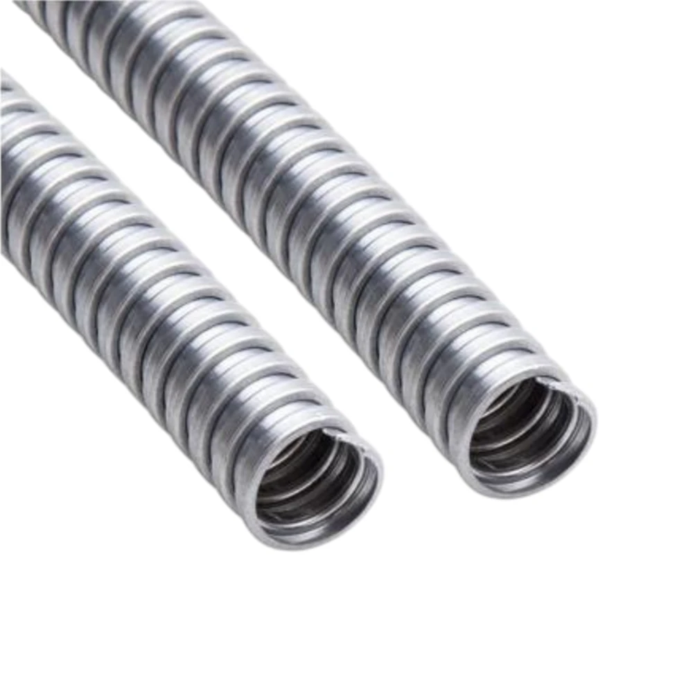 El tubo flexible metálico tipo Greenfield de **1/2″** se utiliza para proteger conductores en recorridos cortos donde hay vibración o riesgo de daño mecánico, como cerca de compresores, tableros y equipos en cuartos de máquinas. Es una solución práctica en HVAC/R para mejorar orden y robustez del tendido eléctrico. Instala con conectores compatibles, evita dobleces bruscos y asegura puesta a tierra conforme norma.
