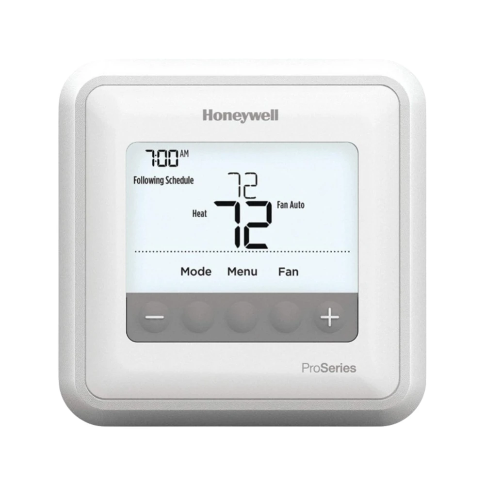 Termostato 1 etapa digital, programable 7-DAY, 5-2, 5-1-1, modelo TH4110U2005/U, HONEYWELL es un termostato digital orientado a aplicaciones residenciales y comerciales ligeras. Permite controlar etapas de calefacción/enfriamiento y ventilador, con programación para ahorro energético según el modelo.